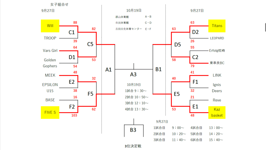 第2シードはKAZ BASKET 第3シードTiTANS 第4シードFIVE Sとなりました。