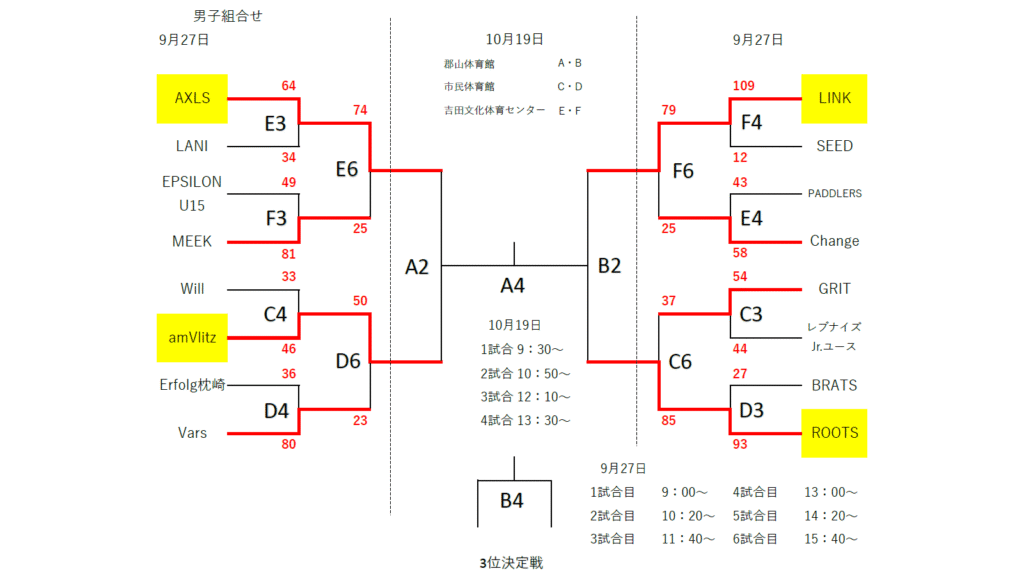 第1シードがAXLS 第2シードROOTS 第3シードLINKは、順調にベスト4に名乗りを上げました。