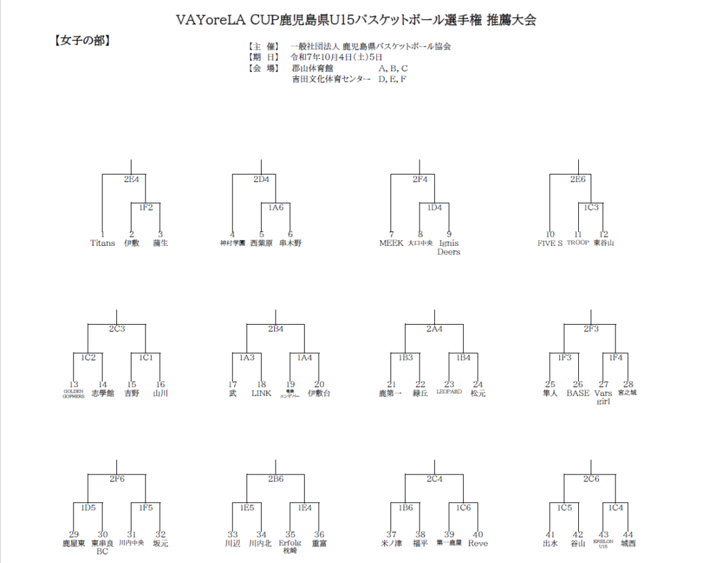 (女子組み合わせ)鹿児島県ジュニアウィンターカップ予選(推薦大会)2025